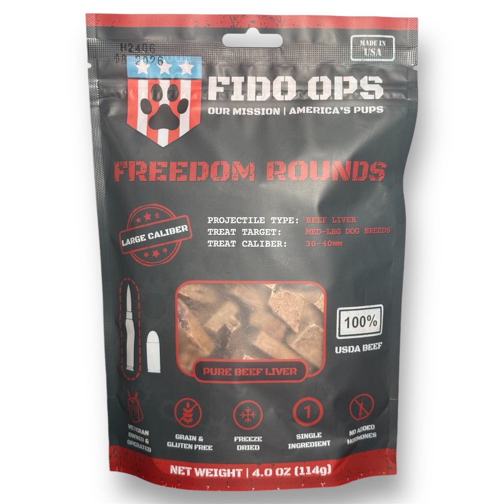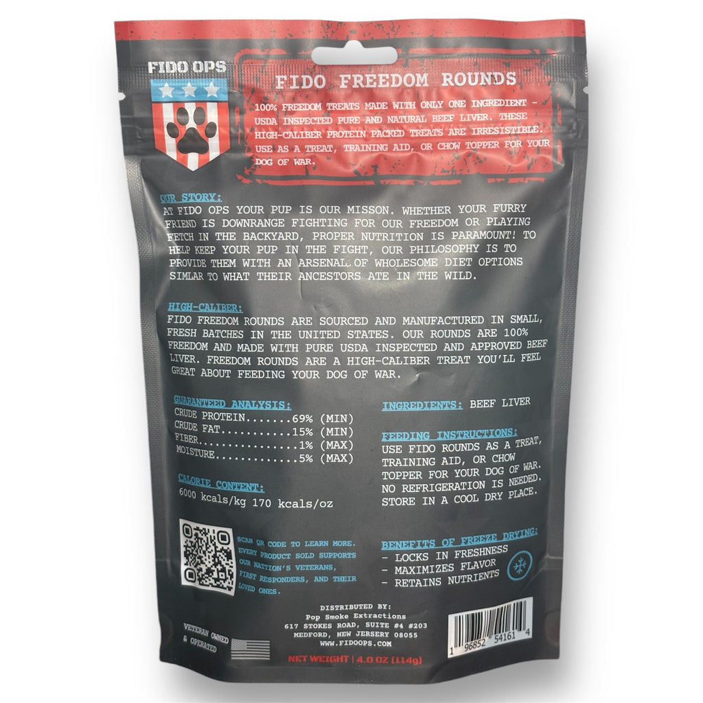 1. Made with pure beef liver, freeze-dried in small fresh batches to retain all nutrients and flavor so your Dog of War can enjoy. A Freedom Round hits the mark to be both wholesome and tasty.
